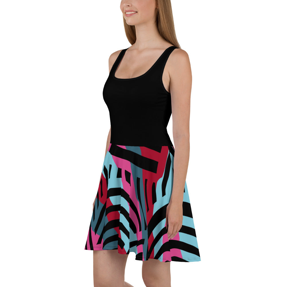 African Print Stripe Collage Skater Dress