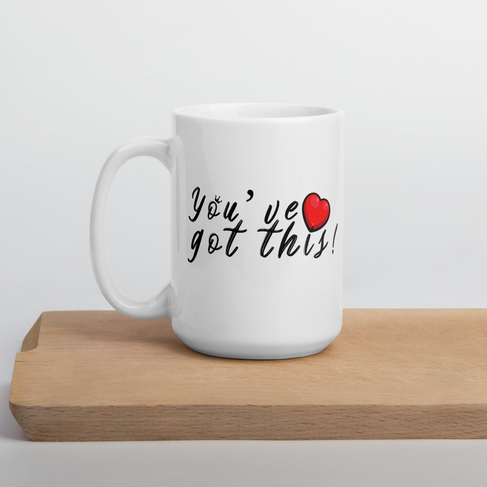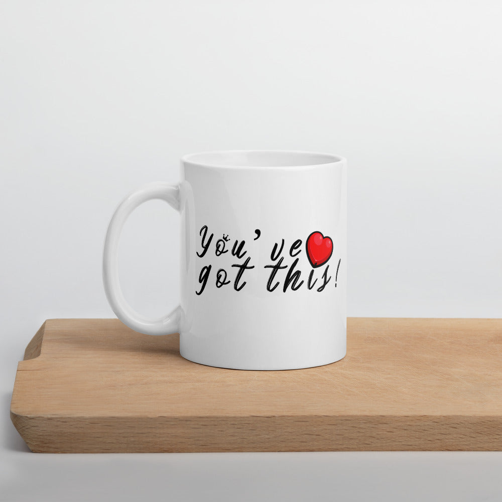 Whether you're drinking your morning coffee, evening tea, or something in between – this mug's for you! It's sturdy and glossy with a vivid You’ve Got This design that'll withstand the microwave and dishwasher.